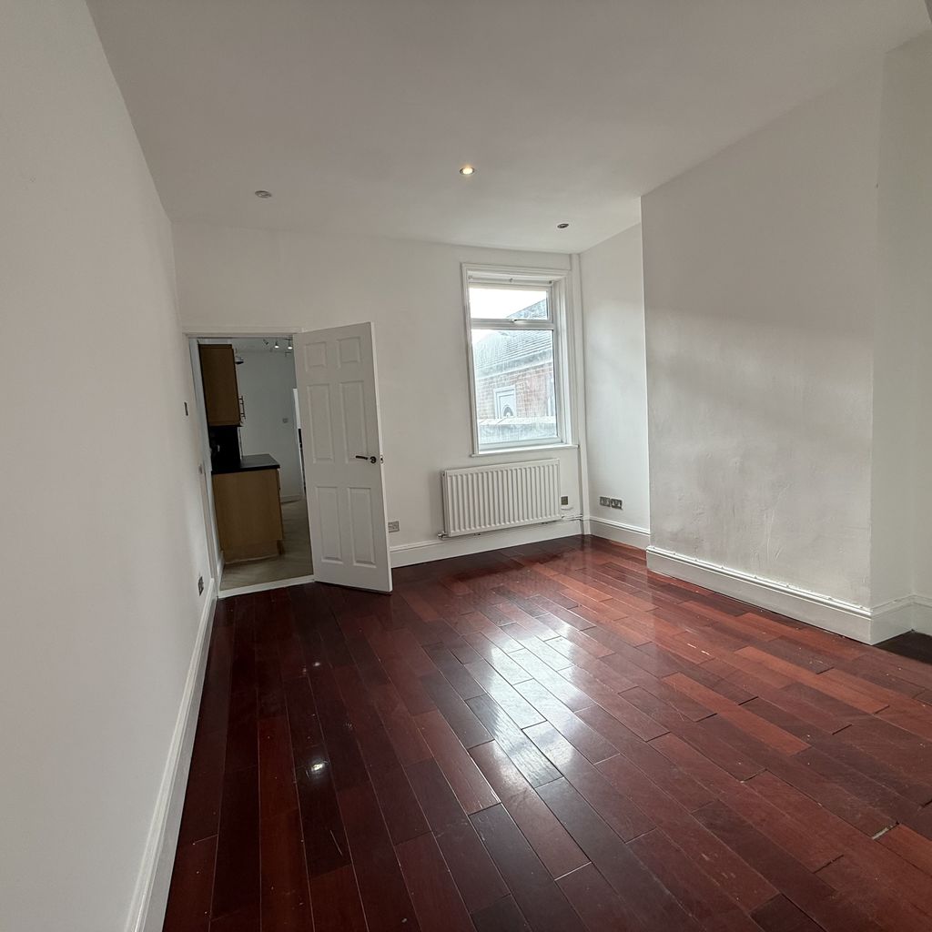 With tiled floor, radiator, Power Point, aerial point, inset spotlights and electric fire.