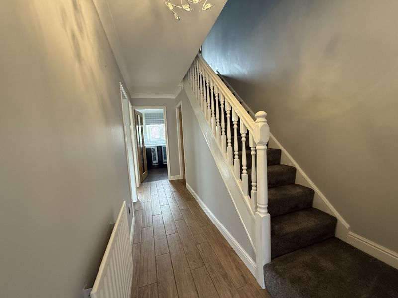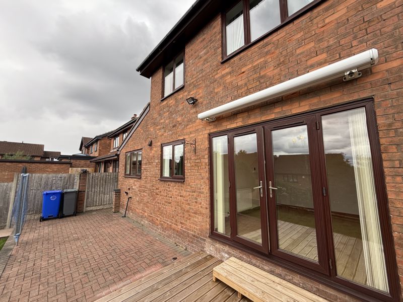 To the frontage is a block driveway suitable for parking two cars at the rear is a lawned garden with decked seating area and patio.