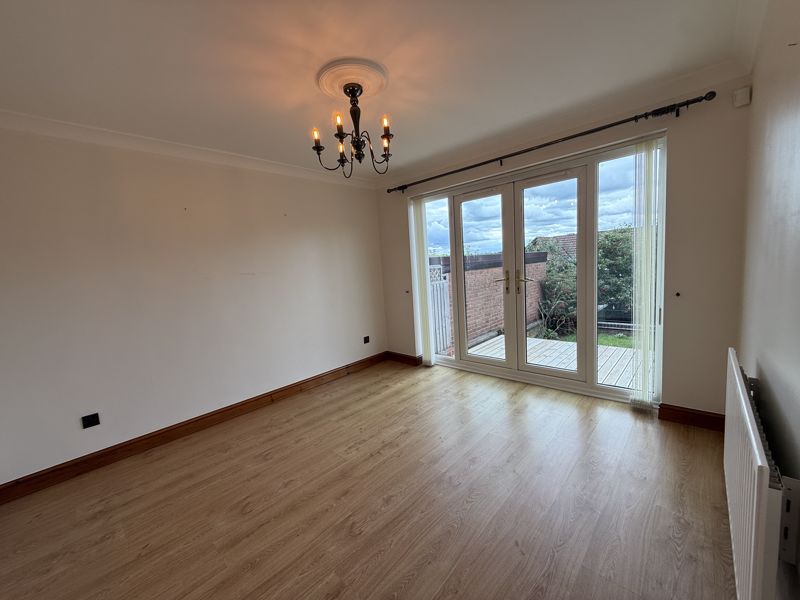 With laminate floor, radiator, Power Point, patio doors onto rear.