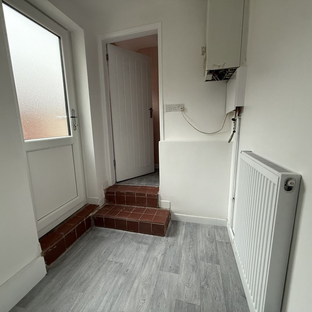 With wood effect floor, door to rear, radiator, boiler.