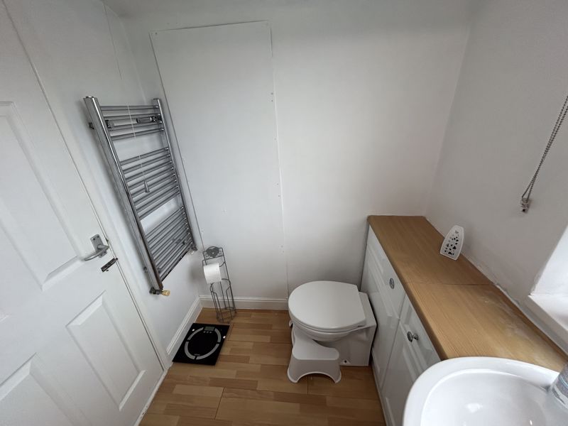 With carpeted floor, PowerPoint, radiator, built in cloaks cupboard. PVcu door to rear, stairs off.