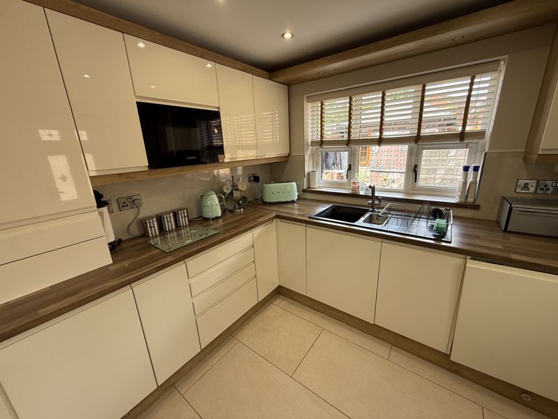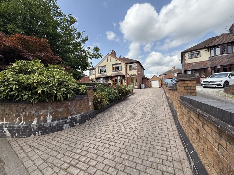A fully modernised semi-detached property situated on a larger than average plot. This property benefits from a modern kitchen and bathroom, gas central heating, double glazing, ample off-road parking, garage and Sun house. The property comprises entrance hall, living room, dining room and kitchen at ground floor level with three bedrooms and a family bathroom to the first floor. To the frontage is a block paved driveway suitable for parking five or six vehicles and a lawn garden with mature shrubs. At the rear is a blocked garden leading to a summer house and single detached garage.