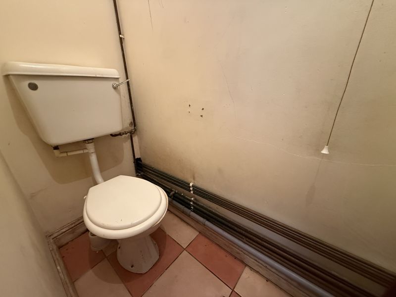 With part tiled walls and tiled floor. Includes wash basin and WC.