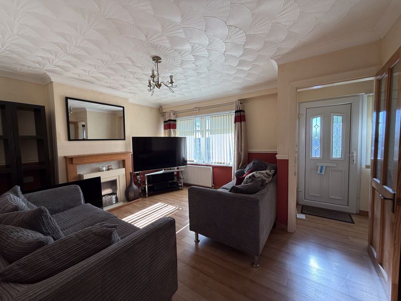 With laminate floor, radiator, Power Point, aerial point, feature hearth with inset fire.
