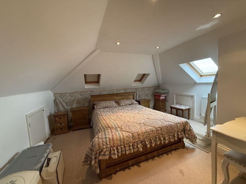 With carpeted floor, vellux windows to side and rear, inset spotlights, radiator, Power Point, eaves storage, walk-in wardrobe. Ensuite bathroom off.