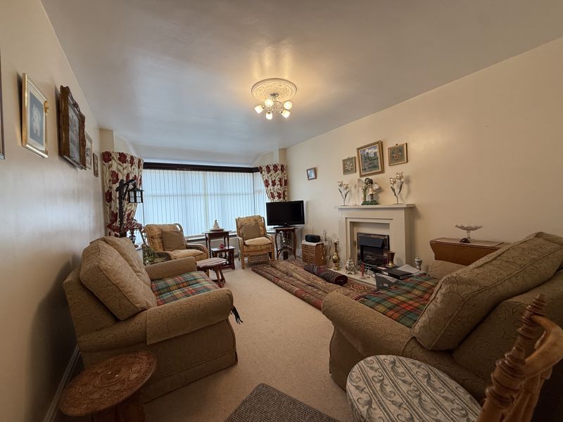With carpeted floor, radiator, Power Point, aerial point, feature hearth with inset fire. Ornate window onto hallway.