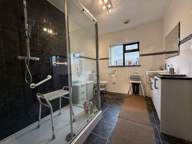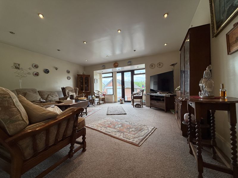 A large detached four bedroom bungalow situated in the popular suburb of Trentham. This large detached property benefits from gas central heating and double glazing, extensive grounds and modern kitchen and bathrooms. Accommodation comprises entrance hallway, bedroom/dining room, study/bedroom, utility room, kitchen, living room, Bedroom at ground floor level with a large bedroom and ensuite bathroom to the first floor. To the frontage is a low maintenance well maintained garden and off-road parking. At the rear is a large lawn patio seating area and double garage.